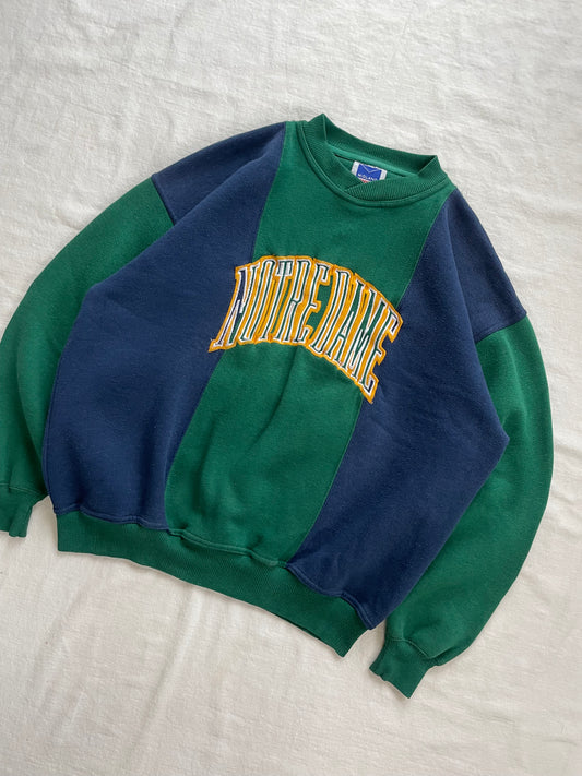Vintage Notre Dame Green Color Blocked Crewneck Large