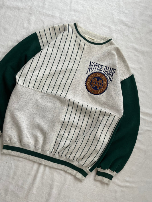 Vintage Notre Dame Striped Green Crewneck Large