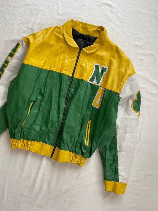 Vintage Notre Dame Green and Yellow Leather Jacket Large