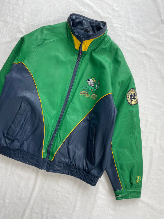 Vintage Notre Dame Green Leather Jacket XLarge