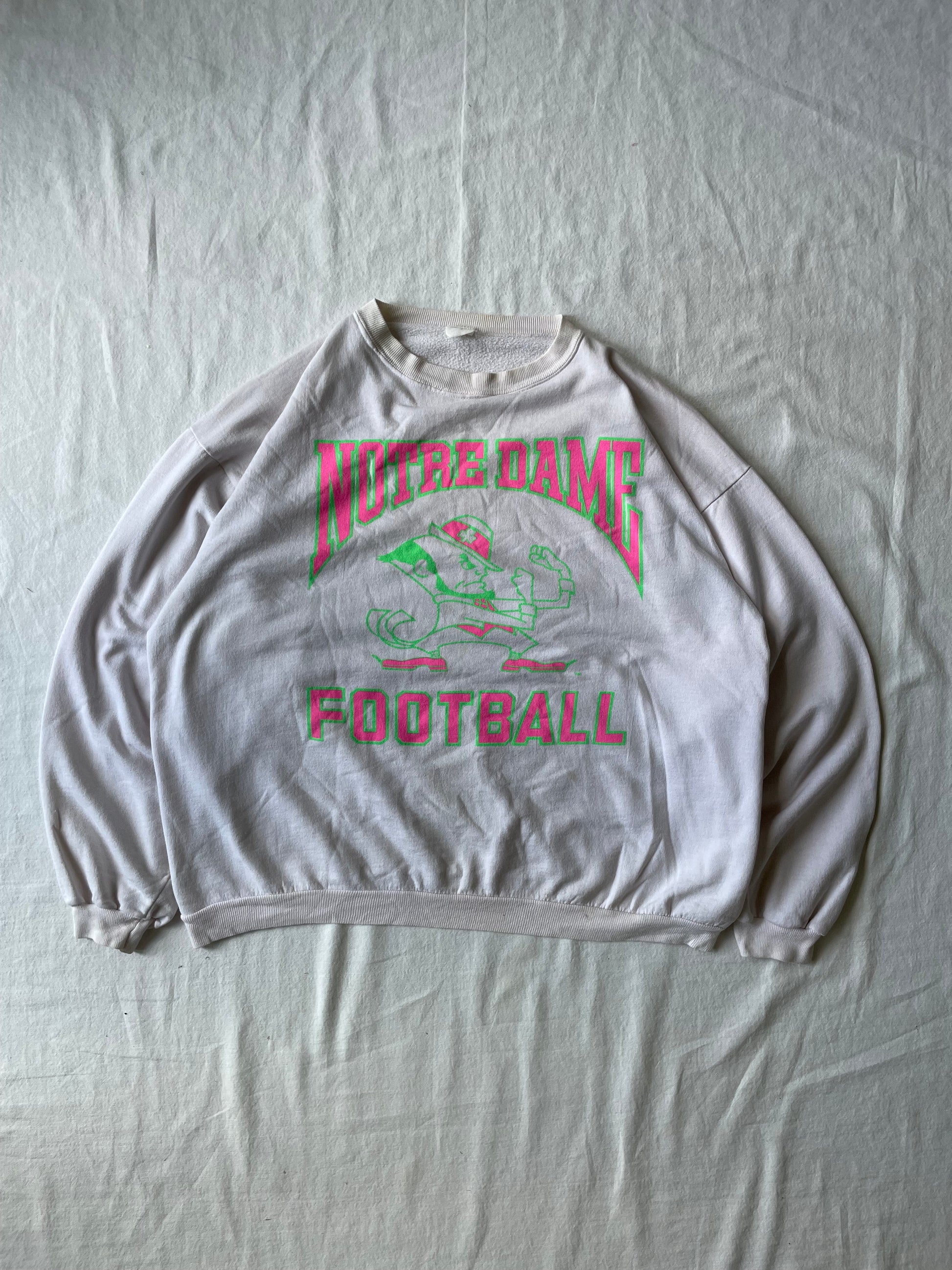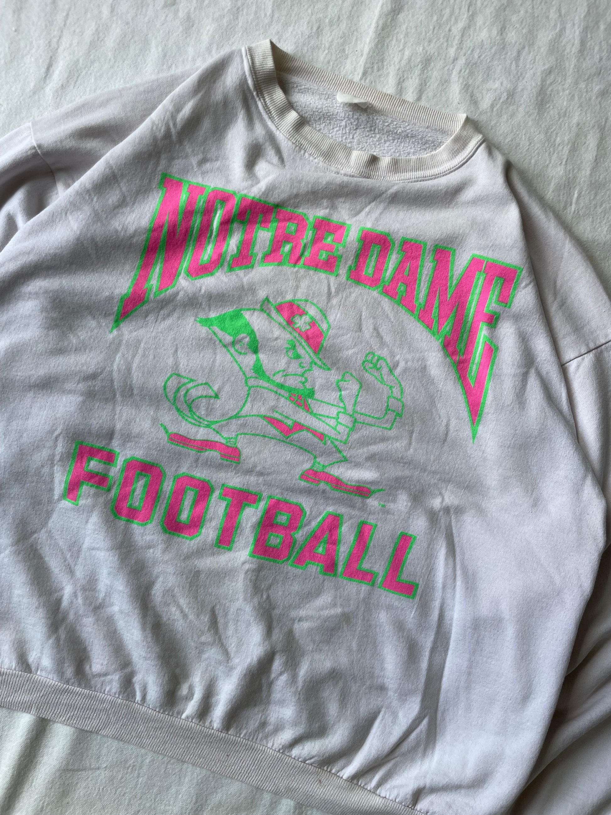 Vintage Notre Dame Football Pink/Green Crewneck XLarge