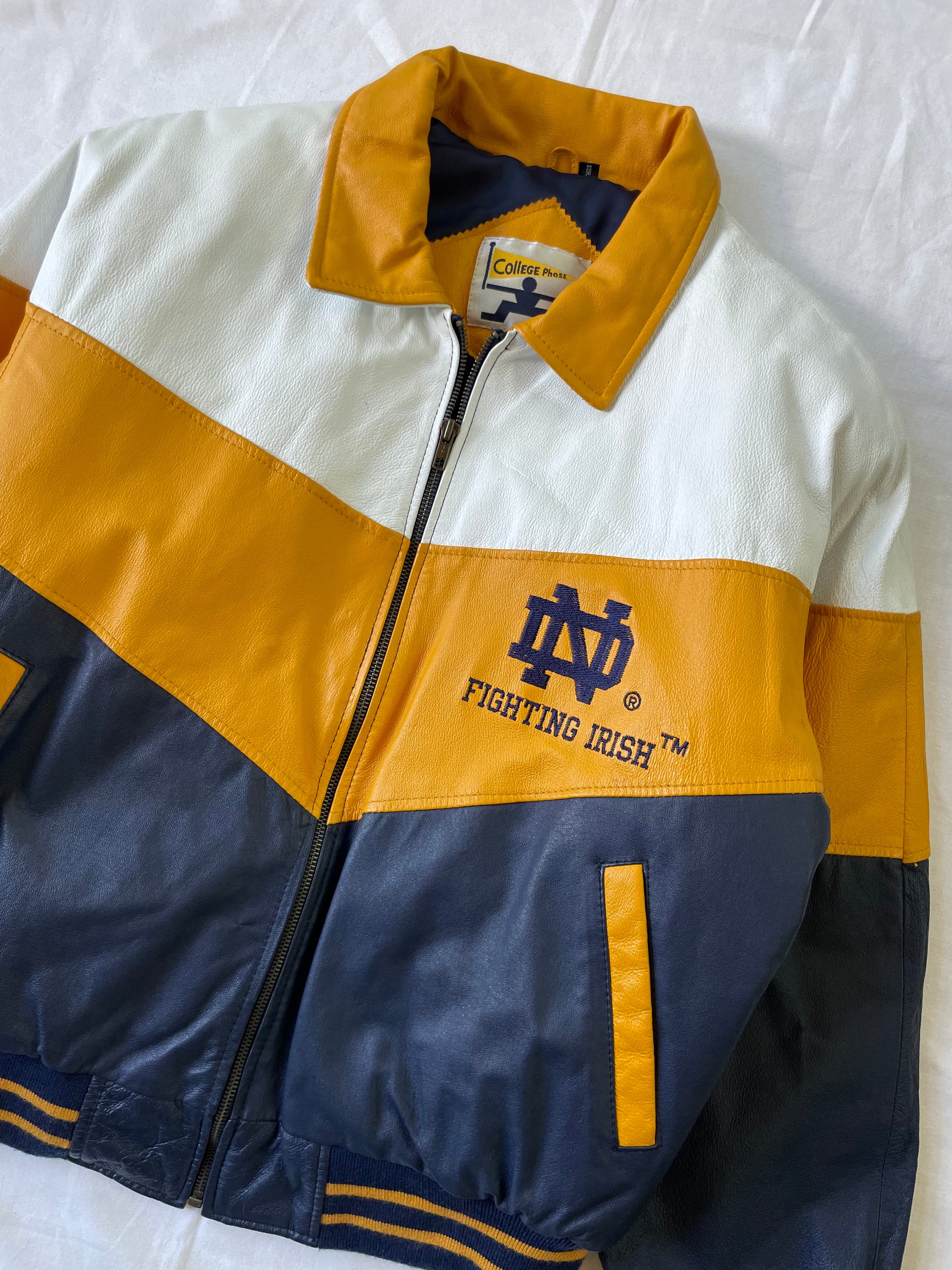 Vintage Notre Dame Leather Bomber Jacket Large