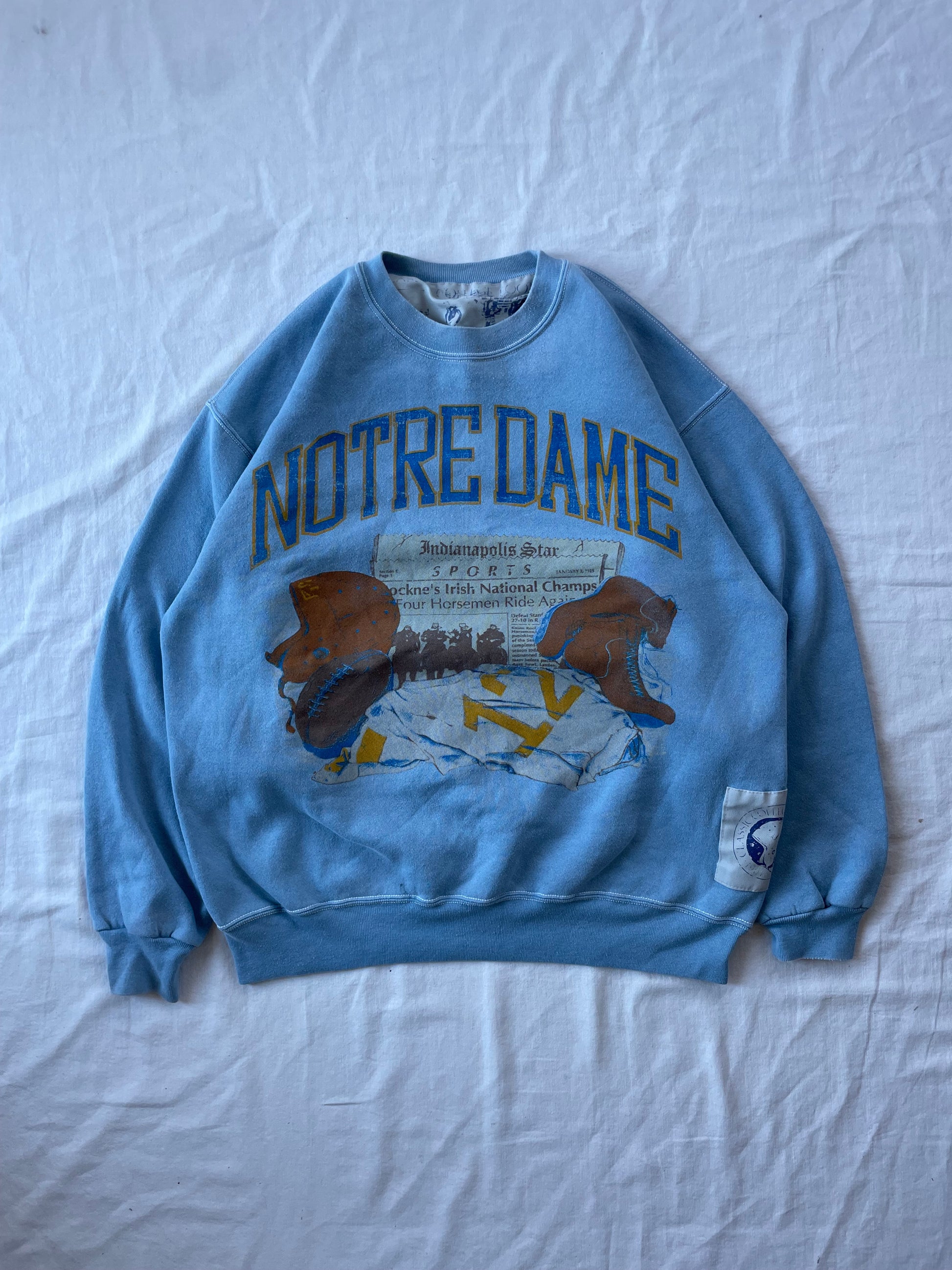 Vintage Notre Dame Light Blue Football Crewneck XLarge